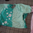 割烹着は型紙のある本を図書館で借りて作ったが、それよりラグラン袖の簡単に出来るワンピースの後ろを開いて紐をつけても出来る。