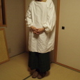 シーツで作った白い大きめの割烹着。これならたとえばお手伝いに行くときも使える。だからどんどん「家事ができる」「着物でも家事ができる」ものを作り冬と春は