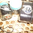 赤、それから黄色(に変色してるもの)これらを染めるのだ。染め粉はふるい。一番左の何十年前の倉庫から出てきたもの。