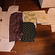 これがはじめての骨董市で買った着物(伊予絣と結城紬と、袋帯と、名古屋帯です。懐かしい写真です。これはそれから Nさんの店に送られました。【きもの いきもの】私と結城紬へ