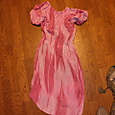 「型紙いらずの着物リメイク」 などの本が出て驚きました。 さっそく着物でどうしても着られないほぐして反にして、洗ったものを、使って作って みたら、なんといわゆるほぐし布、いわゆる直線縫いだけで、服が出来るのです。 裏地も自分で工夫してつけてみました。 そしておもったこと。着物の幅はなんと便利なんだろう・・・ 着物だと反の幅2枚で(約70センチ)後ろ身頃が出来る。反の幅1枚と半分で前身ごろ まで出来る、反の幅1枚で袖が出来る。その横幅も切り取らず、縫いしろを大きくするこ とで横幅、裄の小さいものになる。 そしてほぐしやすいように「手縫い」で仕上げる。 もともと着物は 「その時だけ着るだけでなく何度もほぐして洗い、また別のものに仕立て上げる」ために作 られた、はじめから「次の着物にリメイク」するための衣服だったのですね。 もう一度洗い張りしたり布にして同じ着物をつくってもいいし、また足りない場合は帯 にしたり、そういう「リメイクするのがあたりまえ」として作られたものだったということ を認識しました。 まず洋服にリメイクは下の本とか直線縫いの本とかで型紙なしで出来ますが この下のピンクの矢絣の夏の銘仙、実はこれ1円で落札したのですが・・・袖の片方がも ともと無かったのです。 それを知って、それから縫い目をほぐして、解いて、布にして洗い、それから足りない 身頃に、別布を入れて、そしてまたミシン仕立てですが一度夏着物にしました。でも1年 は夏に着たけど、やはり対丈と色が出ていることから、今度はワンピースに作り変えまし た(ミシンでです) 幅はだんだん小さくなりますが。服にしたら着られます。 こうやって着物ってはじめからリメイクできるように直線で縫い(昔は絹糸で)また解い て別物を作るという究極のエコ衣類なんだと認識しました。 それと幅、これが凄いです。 110センチ幅の洋布が今ほとんどですがこれを三分の一に折ってまっすぐ着ると、それが 即着物や帯の反の幅になります。 一時この直線縫いが面白く、持っていた布もあえて33センチから36センチの長い布に してそれから洋服を作ったこともあります。 甚平さんも作務衣も、それから洋服ならたとえばラグラン袖とか、森南洋子さんの作品 などもこの「きもの幅」が基本なんですね。