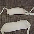 名古屋帯にしろ、袋帯にしろ、名古屋帯なら一重太鼓、袋帯なら二重太鼓がまず結べる かどうかからですし、これがきちんと結べ、かつ着物も着付けできたら、まず大丈夫です。 がなぜか、私の場合着付けの先生にならってから何十回(そうですね、十数回といわず) 一重太鼓を締めましたが、帯によって 「お太鼓の一番上にしわがよる」ことがあります。 一つは腰の補正。 一つは一重太鼓を結ぶ前にきちんと結び目からのしわをとり、かつ一重太鼓の下に帯枕を 入れるときにしわをとってから背中に乗せるか。 一つは帯枕が平らか。 などいろいろありますが、どうしてもお太鼓の上にしわが縦に入ってしまうという欠点が ありました。 少しでも改善しようと思い、作ったのが下の大き目平ら目の帯枕です。もちろん小さい 従来からのものも紐なども自作ですが、さらに改良を加え、帯枕本体の周りに布を巻いて できるだけ長方形に近くしたのが大きい方です。 小さくて丸い形の帯枕に比べ、やはりお太鼓が結びやすくなりましたし、しわの出方も、 補正と、お太鼓を背中に乗せる前、帯の結び目とか帯のしわをとってから乗せるという基 本を押さえると、かなりお太鼓の上のしわがなくなりました。 が時々帯によって出ることもあり、これも着付けの何かコツがあると思います。 補正、長じゅばんの力帯、お太鼓の上部をまっすぐにする、これらは自分で工夫して自 分で従来ある器具を直していくしかないのです。 この2013年にもお正月にずいぶん着物を着ましたがまだまだと思いました。