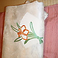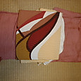 7)いわゆる洒落袋帯です。二重太鼓用。うーん・・・引き締めるには帯揚げと帯締めに濃い色が必要です。